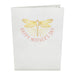 The Mother’s Day Dragonfly pop-up card is 5 inches wide by 7 inches tall.